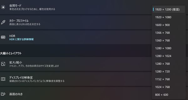 解像度は最大で1920×1200になっています。有機ELディスプレイということもありますし、一般的なフルHDの解像度の機種と比べてもより奇麗な画面でPCを楽しむことができます。