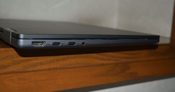 上画像は左側面になります。ポート類は左からHDMI、USB3.2 Gen2 Type-C×2、マイクロホン/ヘッドホン・コンボ・ジャックになります。